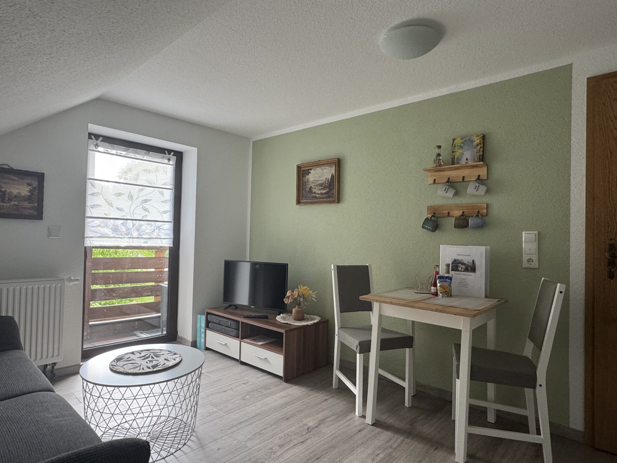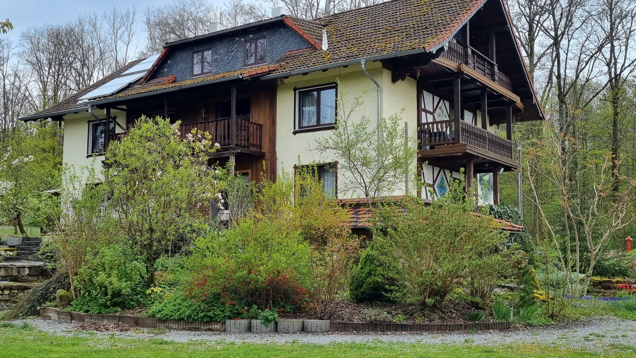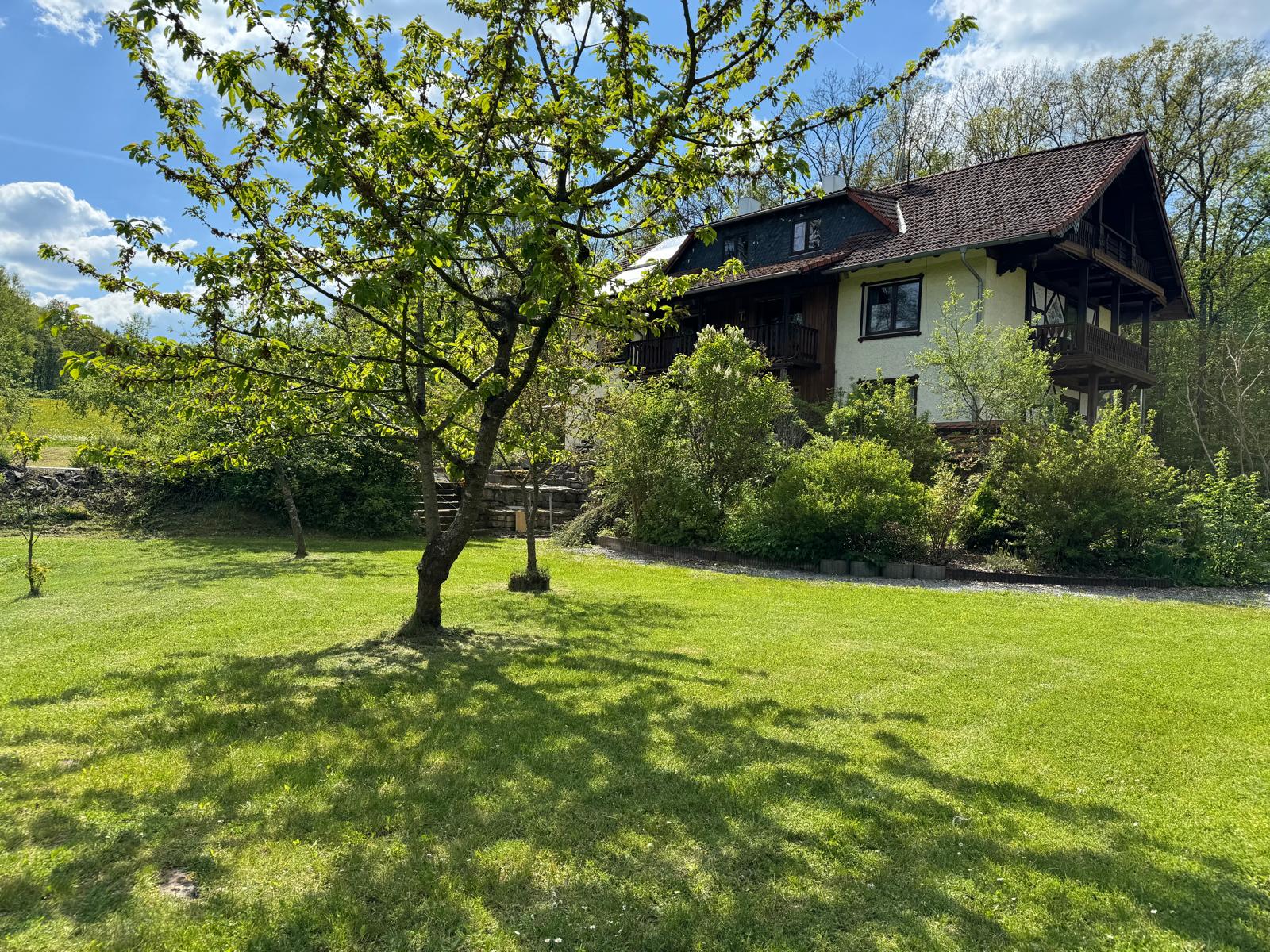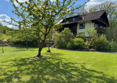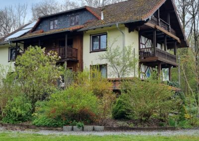 Die ruhige Lage im Wald, mit Blick auf den Berg „Alte Mark“ (ugspr. „Altmark“) lädt ein zu einem erholsamen Urlaub und ist perfekter Ausgangspunkt für lange Spaziergänge, Wanderungen und Biketouren.